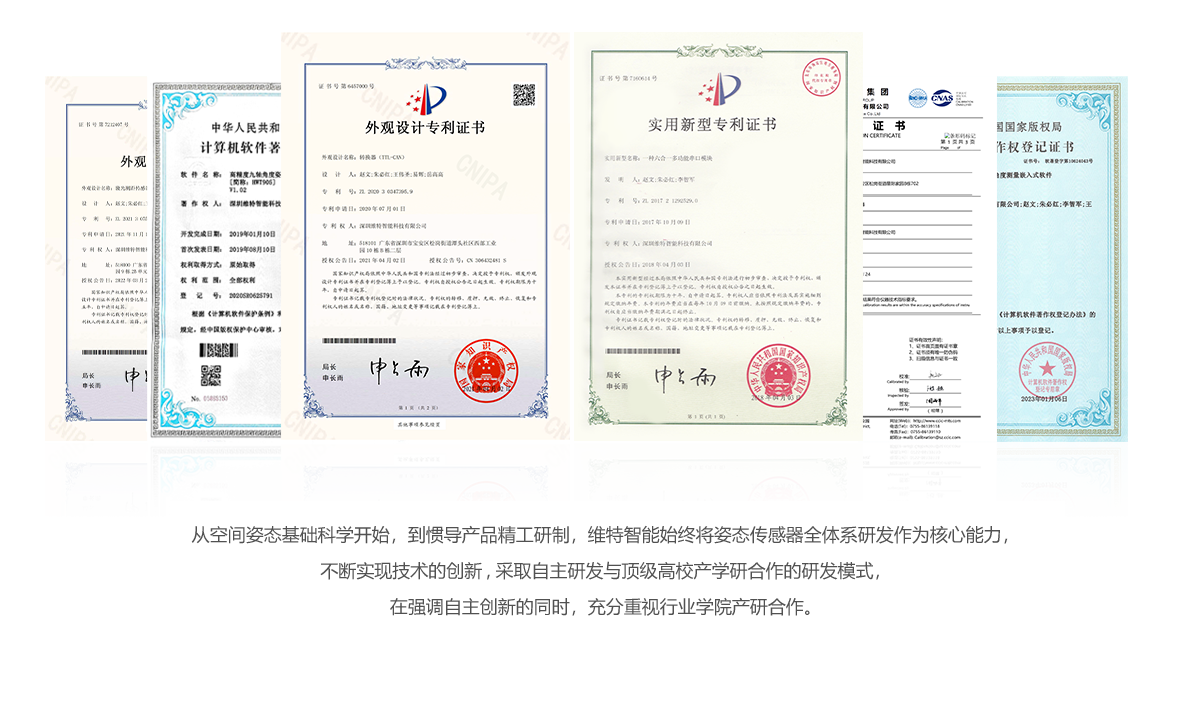 深圳维特智能科技有限公司(简称维特智能witmotio)是一家专注于高精度定位定姿的传感器公司,成立于2015年11月10日。通过ISO9001、IATF16949质量体系认证,总计获得60余项专利/软著。维特智能拥有一支业界丰富经验的研发团队,不断坚持技术的创新优化,使产品技术具备领先优势。硬件方面拥有万分之一度高精度转台、高低温测试机、SMT贴片机等生产测试设备,结合自主研发的卡尔曼滤波融合姿态动力学算法,为客户提供高精度、高动态、实时补偿的定姿和定位测量,满足不同场景的应用需求。