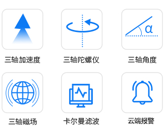 2. 产品自带震动报警、急转弯报警、超速报警、XY轴角度报警等报警功能,用户可自行设置报警值,当超过报警值时,传感器上报数据。手机微信远程,响应速度快,监控稳定。
